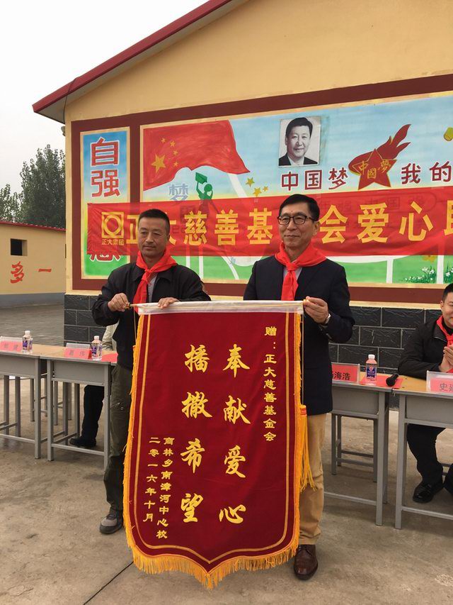南漳河小學(xué)感謝正大慈善基金會(huì)的愛心善舉,并贈(zèng)送錦旗。