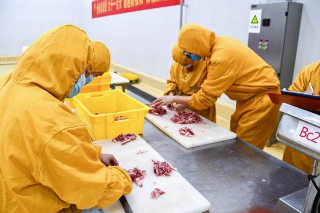 比賽分為兩個(gè)項(xiàng)目:小酥肉原料肉切肉比賽和小酥肉包裝比賽。公司屠宰車間、分割車間、調(diào)理品車間、副產(chǎn)車間和熟食車間共派出6支參賽隊(duì)伍。小酥肉原料肉切肉比賽每個(gè)隊(duì)伍時(shí)間限定20分鐘,在20分鐘內(nèi)根據(jù)所切肉條的重量和完成質(zhì)量評(píng)定名次。鍋圈小酥肉包裝比賽每個(gè)隊(duì)伍包裝300袋(約80kg)小酥肉,根據(jù)所用時(shí)間和包裝合格率評(píng)定。比賽開始之前,熟食廠經(jīng)理張沛宣布了比賽的規(guī)則,叮囑參賽選手在比賽中注意安全,隨后比賽拉開了帷幕。