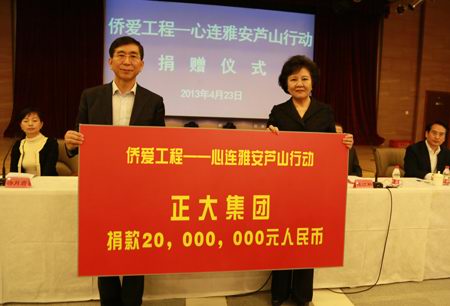 正大為雅安災(zāi)區(qū)捐款2000萬(wàn)元
