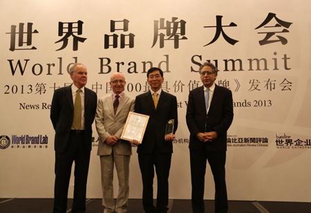 6月26日,由世界品牌實驗室、世界經(jīng)理人雜志等機構(gòu)主辦的世界品牌大會暨2013年第十屆《中國500***具價值品牌》發(fā)布會在北京東方君悅大酒店召開。會議發(fā)布了2013第十屆《中國500***具價值品牌》排行榜,正大集團以208.86億元的品牌價值位居第88位。美國耶魯大學(xué)管理學(xué)院萊維·多爾教授(右一)、法國歐洲工商管理學(xué)院瓊·克勞德·拉里齊教授(左二)以及英國牛津大學(xué)商學(xué)院斯蒂芬·沃格教授(左一)為正大集團頒獎。董事長辦公室(北京)楊海浩總裁(右二)代表集團接受獎杯及證書。