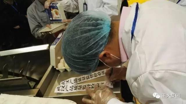 現(xiàn)場,武漢產(chǎn)品質(zhì)量監(jiān)督檢驗所方惠文主任、彭勇勝先生對正大雞蛋進(jìn)行現(xiàn)場抽檢。